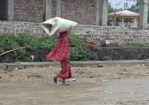 लहान — वर्षात्को झरीसँगै हिलोमय बनेको सडक। चारैतिर पानी र कठिन परिस्थिति। तर यिनै चुनौतीका बीच एक मधेसकी महिला टाउकोमा घाँसको भारी बोकेर आफ्नो दैनिकीमा अघि बढिरहेकी छिन्।